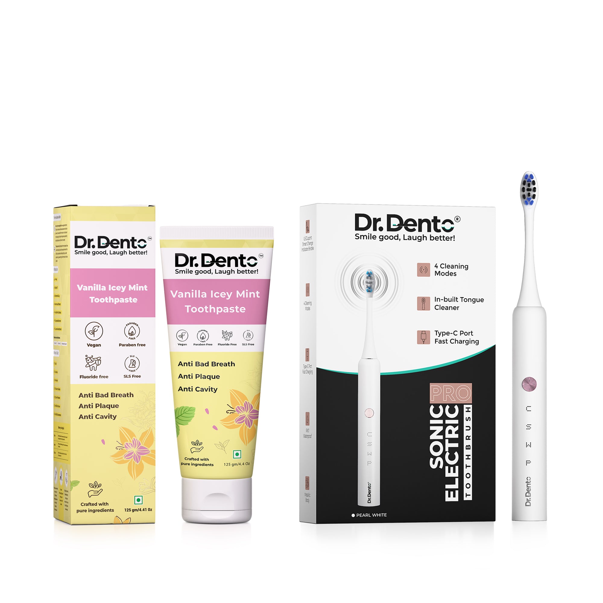 The sonic electric power ensures better plaque removal due to its high-frequency vibration in addition to our hand-picked ingredients like Papain Enzyme, Vanilla Fruit and Myrrha Resin, of our toothpaste and mouthwash!