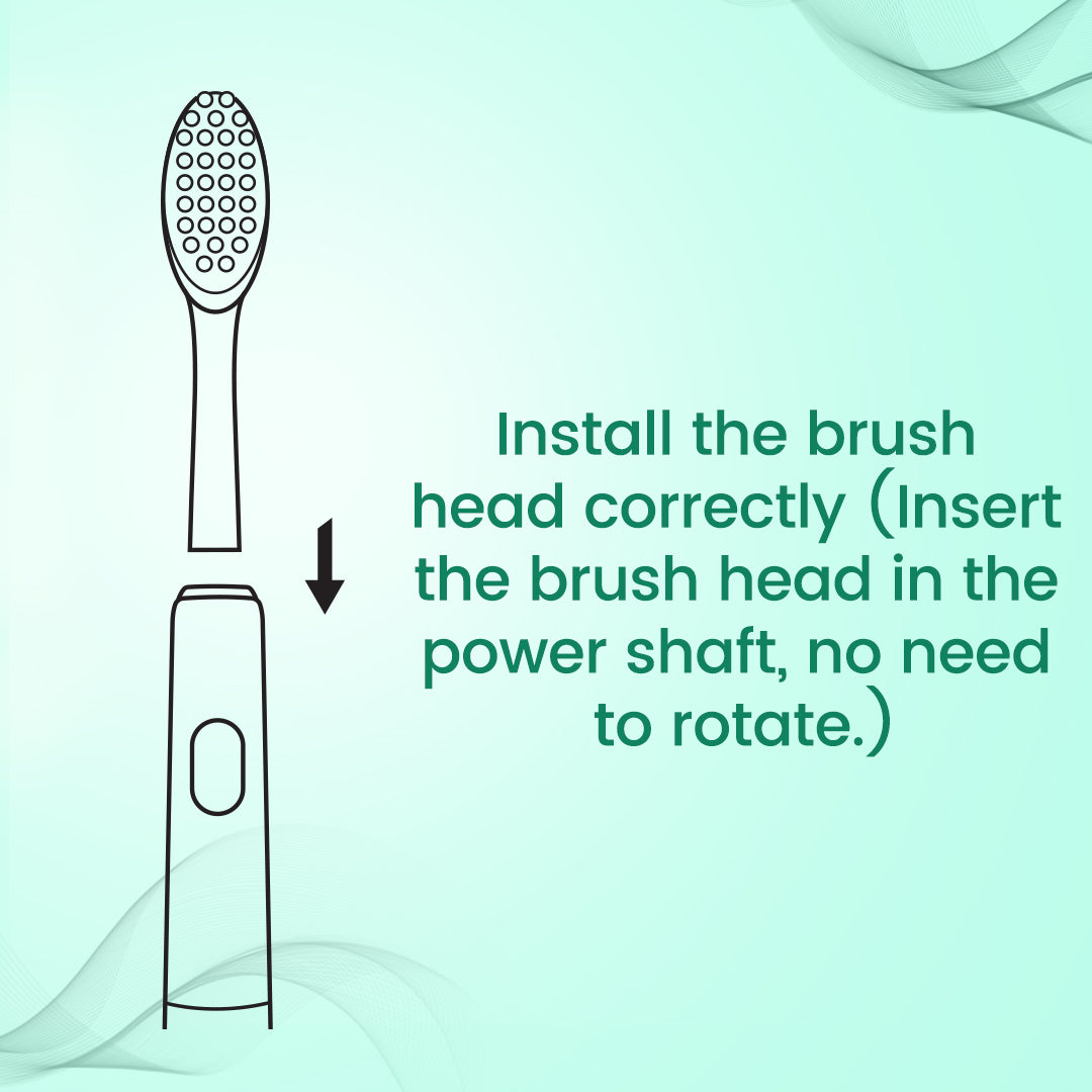 To replace the brush head, gently pull away from the handle. Press down on the metal power shaft to attach the new brush head. Do not rotate.